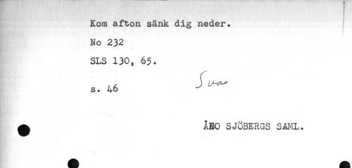 //// .... . .. - — . - . //// Kom afton sänk dig neder. ! //// No 232 //// . //// SLS 130, 65. //// s. 46 //// . //// t //// ^ ÅBO SJÖBERGS SAML. //// ^^ * ////