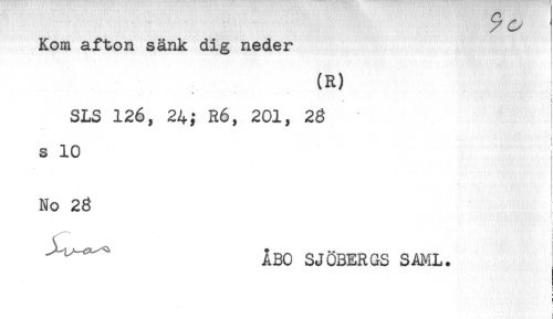 //// Kom afton sänk dig neder //// (R) //// * * : //// } //// SLS 126, 24; R6, 201, 28 //// s 10 //// No 28 //// i //// ^^^ ÅBO SJÖBERGS SAML. //// t ////