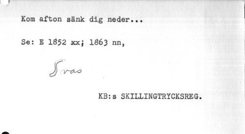 //// Kom afton sänk dig neder... //// < //// * //// f //// s //// Se: E 1852 xxj 1863 nn, //// KB:s SKILLINGTRYCKSREG. ////