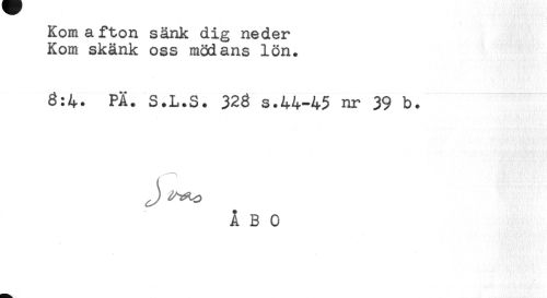 //// Kom afton sänk dig neder //// Kom skänk oss mödans lön. //// 6:4. PÄ. S.L.S. 326 s.44-45 nr 39 b. //// ÅBO ////