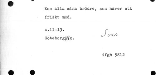 //// Kom alla mina brödre, som haver ett //// } * friskt mod. //// s.11-13* 7 //// Göteborg^g. //// ifgh 5312 ////