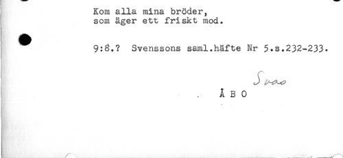 //// j Kom alla mma broder, //// I som äger ett friskt mod. //// 9:^.? Svenssons saml.häfte Nr 5.s.232-233* //// ÅBO //// s //// ji.. / \ _________ . ^......... ....y ////
