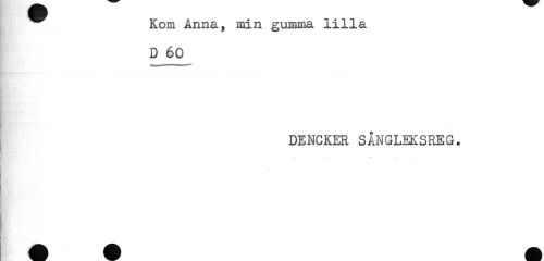 //// Kom Anna, min gumma lilla //// D 60 //// DENCKER SÅNGLEKSREG. //// K*' ////