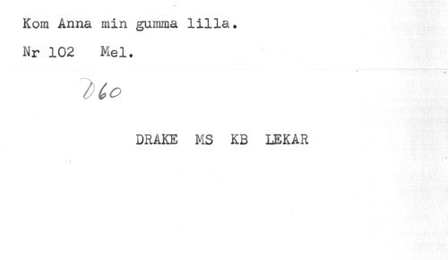 //// Kom Anna min gumma lilla. //// Nr 102 Mel. //// * //// DRAKE MS KB LEKAR ////
