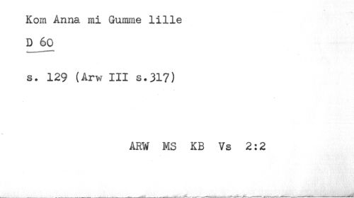 //// Kom Anna mi Gumme lille //// D 60 //// s. 129 (Arw III s.317) //// ARW MS KB Vs 2:2 ////
