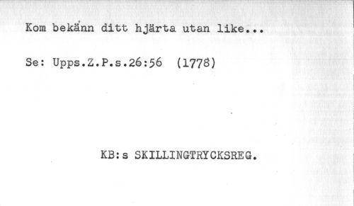 //// Kom bekänn ditt hjärta utan like... //// Se: Upps.Z.P.s.26:56 (1778) //// ) //// * //// < //// * //// < //// ) //// ) //// i //// KB:s SKILLINGTRYCKSREG. //// . i //// *- !-'<*, '<<. t "'-' ! //// : ) ////
