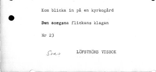 //// I Kom blicka in på en kyrkogård //// Swn sorgsna flickans klagan //// ; //// Nr 23 //// ; ^ . LÖFSTRÖMS VISBOK ////
