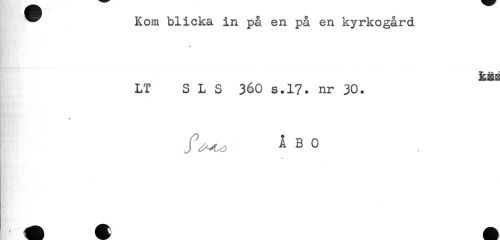 //// ^ Kom blicka in på en på en kyrkogård //// * //// LT SLS 360 s.17. nr 30. //// * //// A B 0 //// ^ A 1 ////