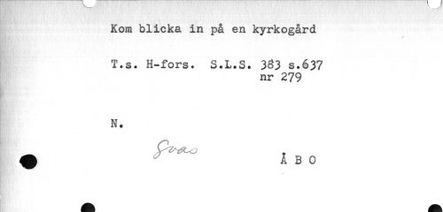 //// Kom blicka in på en kyrkogård //// T.s. H-fors. S.L.S. 383 s.637 //// nr 279 //// - //// N. //// + ^ A BO ////