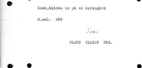 //// Komb,blicka in på en kyrkogård //// - //// M.mel. 269 //// i ji^o //// OLAUS OLSSON REG. ////