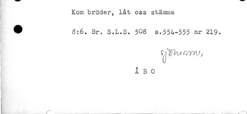 //// Kom bröder, låt oss stämma //// ^ 8:6. Br. S.L.S. 508 s.554-555 nr 219. //// ÅBO //// ! //// - ////