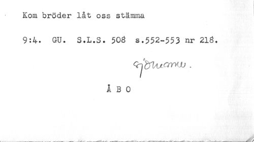 //// Kom bröder låt oss stämma //// 9:4. GU. S.L.S. 50g s.552-553 nr 21g. //// ÅBO ////