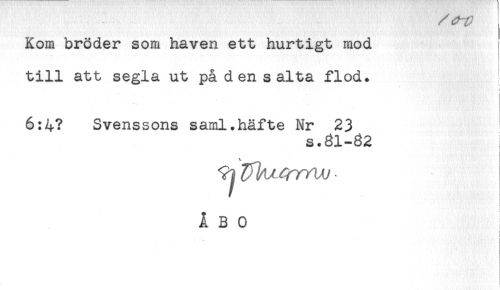 //// Kom bröder som haven ett hurtigt mod //// till att segla ut på den salta flod. //// 6:4? Svenssons saml.häfte Nr 23 //// s.81-32 //// ÅBO ////
