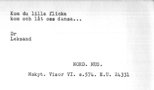//// ^ i , ' //// Kom du lilla flicka //// kom och låt oss dansa... //// Dr //// Leksand //// NORD. MUS. //// Mskpt. Visor VI. s.574. E.U. 24331 ////
