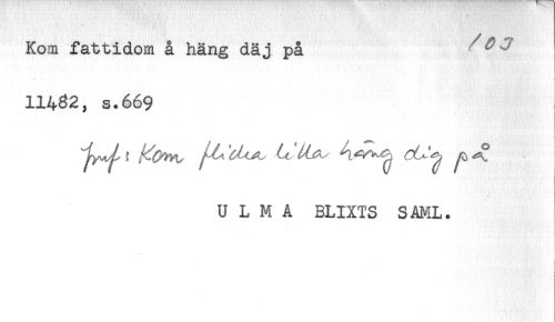 //// Kom fattidom å häng däj på //// 11482, s.669 //// U L M A BLIXTS SAML. //// * //// < ////