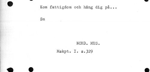 //// Kom fattigdom och häng dig på... //// Sm //// * //// NORD. MUS. //// Mskpt. 1. s.329 ////