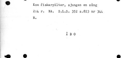 //// * Kom fiskarpiltar, sjungen en sång //// 2:4 r. NA. S.L.S. 352 s.323 nr 344 //// N. //// ÅBO ////