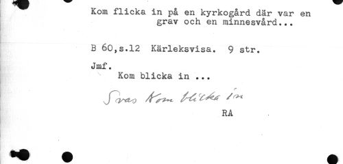 //// B 60,s.l2 Kärleksvisa. 9 str. //// Jmf. //// Kom blicka in ... //// * //// RA ////