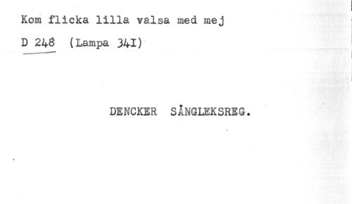 //// Kom flicka lilla valsa med mej //// D 248 (Lampa 341) //// DENCKER SÅNGLEKSREG. //// * //// * ////