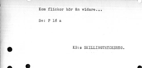 //// [ Kom flickor hör än vidare... //// < //// Se: P 13 a //// ^ KB:s SKILLINGTRYCKSREG. //// - - ////