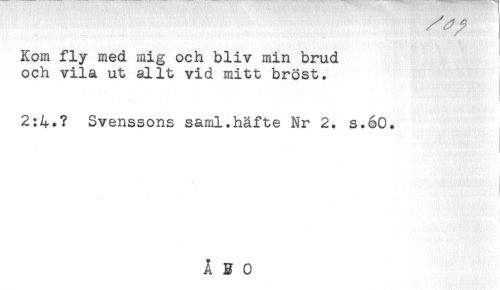 //// Kom fly med mig och bliv min brud //// och vila ut allt vid mitt bröst. //// i //// 2:4.? Svenssons saml.häfte Nr 2. s.60. ////