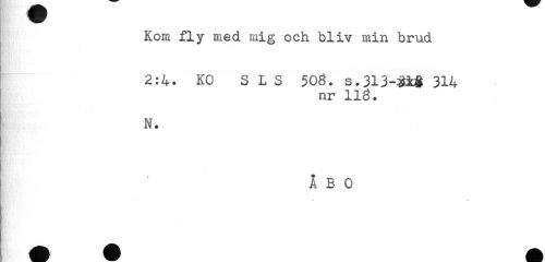 //// Kom fly med mig och bliv min brud //// 2:4. KO SLS 508. s.313-3±& 314 //// nr 118. //// N. //// ÅBO ////