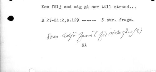 //// Kom följ med mig gå ner till strand... //// ^ B 23-24:2,s. 129------ 5 str. fragm. //// H //// RÅ ////