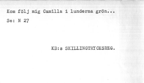 //// Kom följ mig Camilla i lundema grön... //// Se: N 27 //// KB:s SKILLINGTRYCKSREG. ////