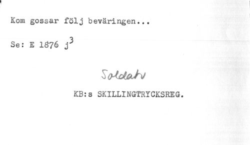 //// Kom gossar följ beväringen... //// Se: E 1376 j^ //// KB:s SKILLINGTRYCKSREG. ////