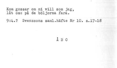 //// Kom gossar om ni vill som jag, //// låt oss på de böljorna fara. //// 9:4.? Svenssons saml.häfte Nr 10. s.17-13 //// ÅBO ////