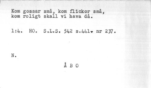 //// Kom gossar små, kom flickor små, //// kom roligt skall vi hava då. //// 1:4. HO. S.L.S. 542 s.441- nr 237. //// N. //// ÅBO ////
