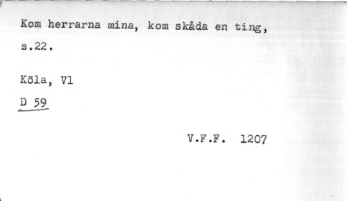 //// Kom herrarna mina, kom skåda en ting, //// s.22. //// Köla, VI //// DJ9. //// V.F.F. 1207 //// i # 't- ////