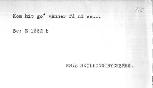 //// Kom hit go* vänner få ni se... //// : //// Se: E 1882 b //// i //// - < //// KB:s SKILLINGTRYCKSREG. //// ) ////