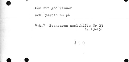 //// Kom hit god vänner //// och lyssnen nu på //// 9:4.? Svenssons saml.häfte Nr 23 //// s. 13-15. //// ÅBO ////