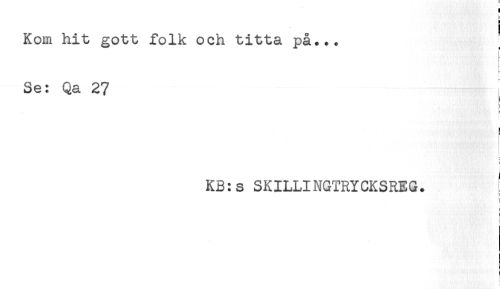 //// Kom hit gott folk och titta på... ] //// Se: Qa 27 //// KB:s SKILLINGTRYCKSREG. ! //// F ////