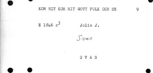 //// KOM HIT KOM HIT GOTT FOLK OCH SE 9 //// E 1846 c3 Jolin J. //// - //// S V A S ////
