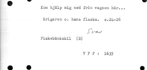 //// Kom hjälp mig ned från vagnen här... //// Krigaren o. hans flaska, s.24-26 //// Fiskebäckskil (B) //// V F F : 1635 ////