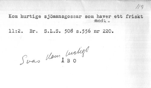 //// — - - - — -— *< //// Kom hurtige sjömansgossar som haver ett friskt //// V* ^ M //// 11:2. Br. S.L.S. 508 s.556 nr 220. //// J ^uo ' ÅBO //// v* ////
