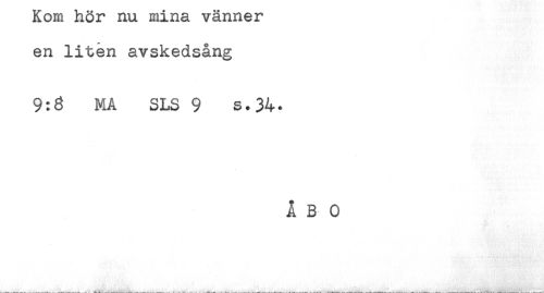//// iYtJlil iiUi iiU. Hi^iio. VcHJLiid //// en liten avskedsång //// 9:8 MA SLS 9 s.34* //// ÅBO ////