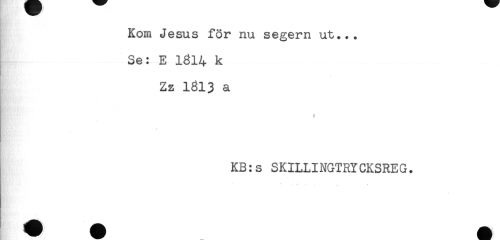 //// Kom Jesus för nu segern ut... //// Se: E 1814 k //// Zz 1613 a //// t //// KB:s SKILLINGTRYCKSREG. //// * - - - t - . //// ^^^ ^^^ ////