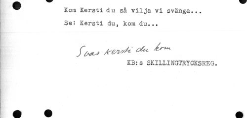 //// ^ Kom Kersti du så vilja vi svänga... //// Se: Kersti du, kom du... //// KB:s SKILLINGTRYCKSREG. ////