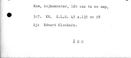 //// Kom, kojkamrater, låt oss ta en sup, //// ^ 3:7. KH. S.L.S. 45 s.135 nr 53 //// Sj: Edvard Klockars. //// A B 0 //// Vt—-**—*". i*-----^ . -___ ^ . ^ . -------—---t.—- . tV.-S*-*-.^—.-^^^*-—--..^-!——__-T. —. . ^_ ^_ __f _. ^^^ ... O—______________—— ._-------------------------— ////