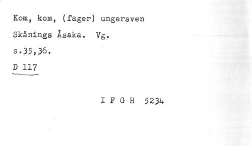 //// Kom, kom, (fager) ungersven //// Skånings Åsaka. Vg. //// s.35,36. //// I F G H 5234 ////