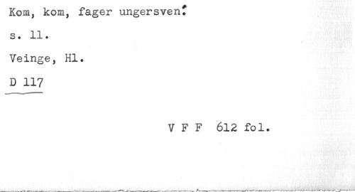 //// R.om, Kom, lager ungersveu. //// S. 11. //// Veinge, Hl. //// D 117 //// V F F 612 fol. ////
