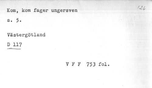 //// Kom, kom fager ungersven //// s. 5. //// Västergötland //// D 117 //// V F F 753 fol. ////