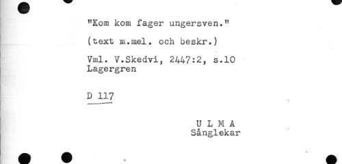 //// "Kom kom fager ungersven." //// (text m.mel. och beskr.) //// Vml. V.Skedvi, 2447:2, s.10 //// Lagergren //// D 117 ////