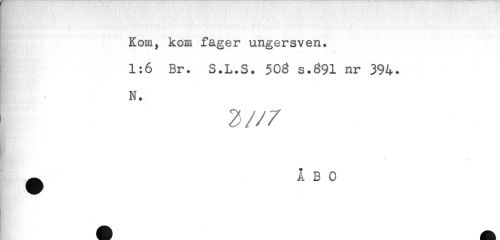 //// . - ' - - . -- V .... . - . . . //// Kom, kom fager ungersven. //// * \ //// 1:6 Br. S.L.S. 50S s.391 nr 394. //// N. //// ^ ÅBO ////