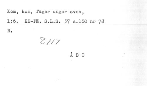 //// Kom, kom, fager unger sven, //// 1:6. KB-PE. S.L.S. 57 s.l60 nr 73 //// N. //// ÅBO //// .t ////