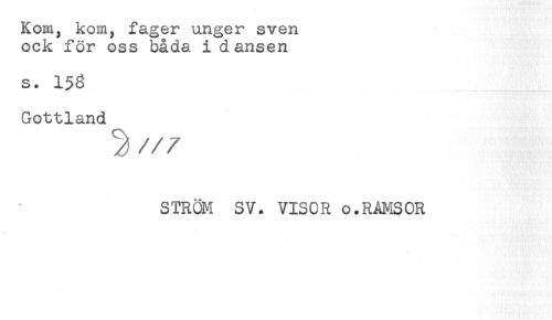 //// Kom, kom, fager unger sven //// ock för oss båda i dansen //// s. 153 //// Gottland //// STRÖM SV. VISOR o.RAMSOR //// * ////