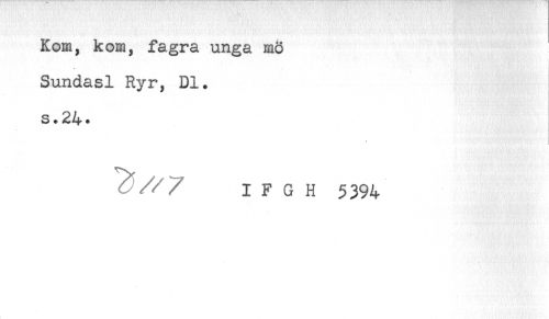 //// Kom, kom, fagra unga mö //// Sundasl Ryr, Dl. //// s. 24* //// - //// I F G H 5394 ////